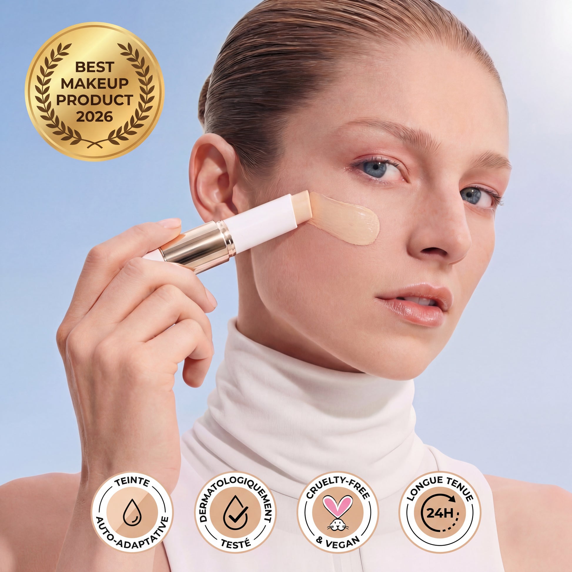 Le fond de teint stick nouvelle génération qui change la donne. Sa texture crème transforme le rituel maquillage en un geste simple et rapide, offrant une couvrance modulable et un fini "peau nue" éclatant.