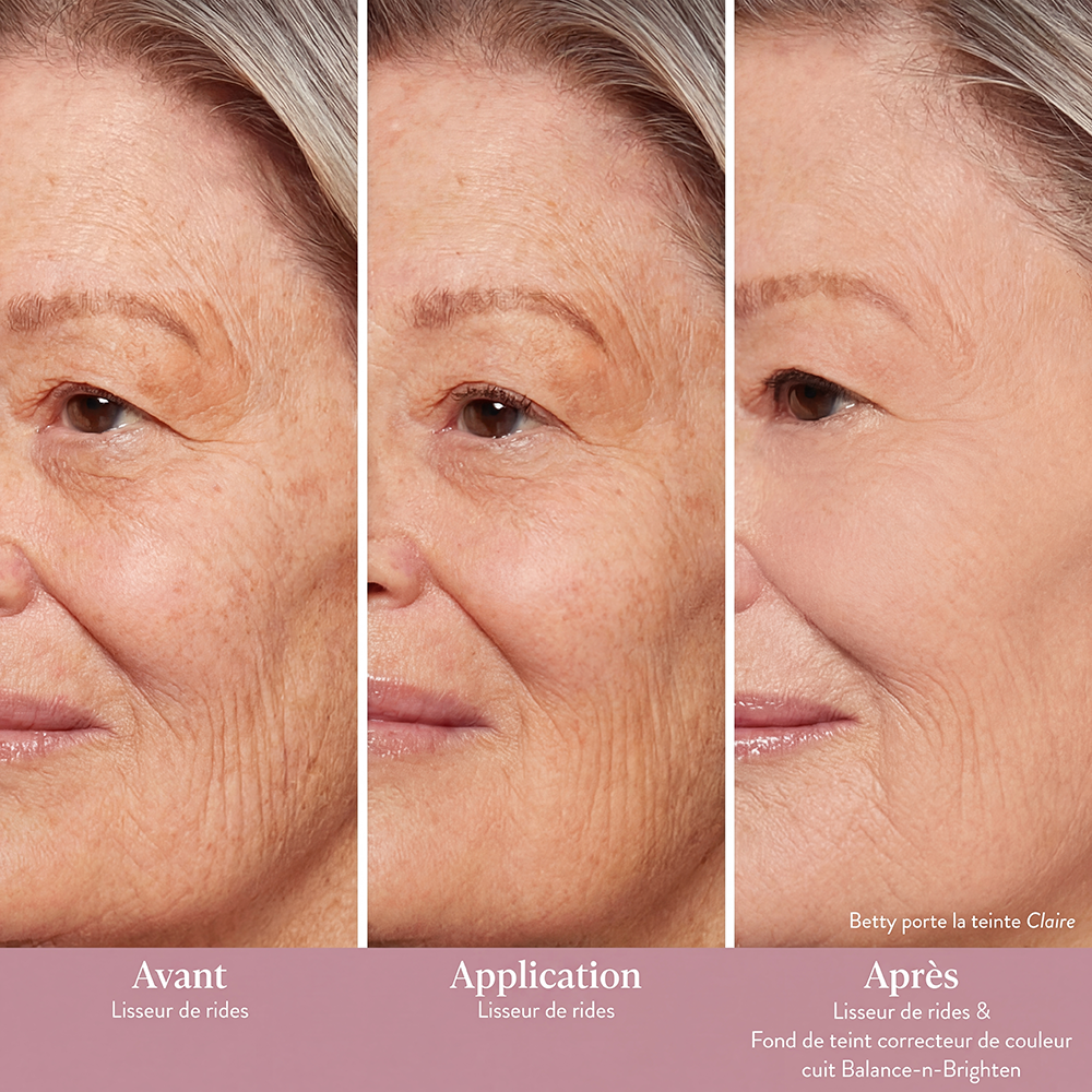 - Elle floute instantanément l'apparence des rides et des imperfections.