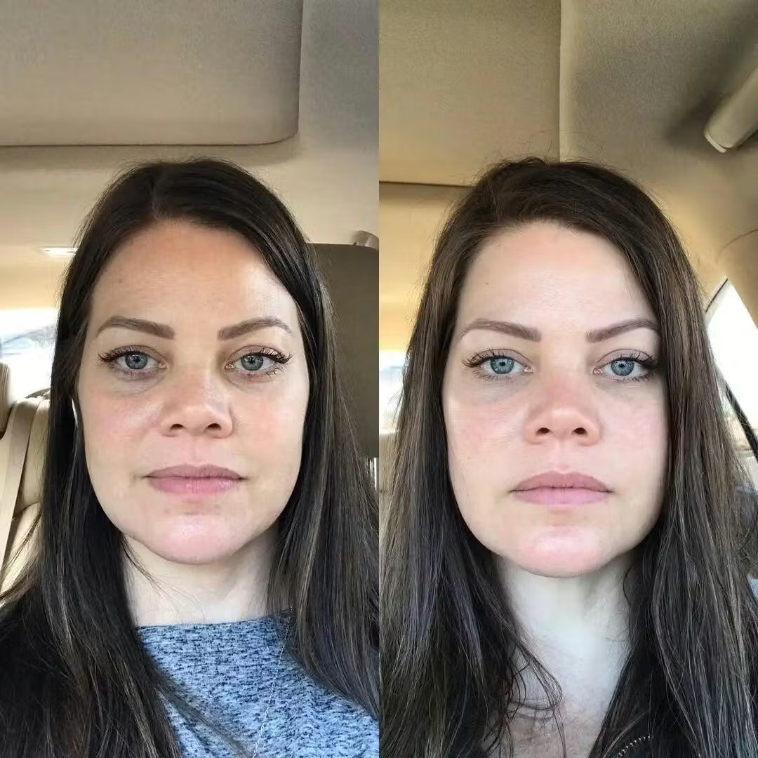 - Le contour des yeux paraît plus calme et moins « irrité ».